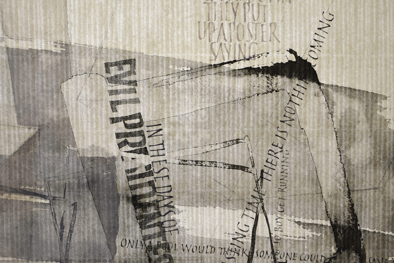 24. Juni 2020Eine Arbeit mit Textelementen von The Clash, Clampdown. Im Februar diesen Jahres konnte ich, noch vor dem Lockdown, in London die Ausstellung „London Calling – 40 years of the Clash” besuchen. Für einen Clashianer wie mich ein echtes Highlight!